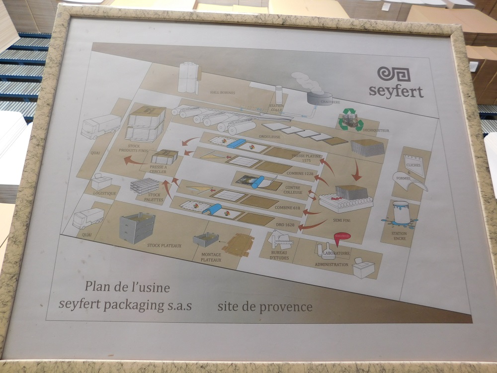 Le 8 juin les étudiants PEC1 ont visité la cartonnerie SEYFERT à Sorgues. Après une présentation en salle des installations (voir photo) par M.Yannick MOLET, nous avons vu fonctionner l’onduleuse, les combinés qui impriment, découpent (voir photo forme de découpe rotative) et collent les caisses ainsi que les machines de montage des plateaux fruits&légumes. Encore merci à toute l’équipe de la cartonnerie .