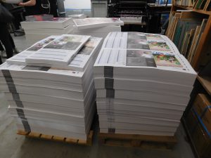Le 27 mars et le 3 avril 2017, les étudiants de PEC1 ont visité l’imprimerie ORTA (Avignon). Cette imprimerie située en face de l’université est équipée de presses offset et numérique et utilise encore des presses Heidelberg de collection pour du pelliculage, de la découpe ou de la dorure. Nous remercions toute l’équipe de cette entreprise pour leur disponibilité et leur accueil chaleureux : les étudiants sont repartis les bras chargés de posters, de blocs au nom de l’entreprise voir même de feuilles pour leurs créations !