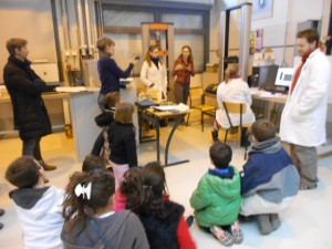 Vendredi 18 janvier, 2 enseignants et un petit groupe d’étudiants de 2ème année du département GCE ont accueilli des élèves de primaire de la Classe d’Inclusion Scolaire pour enfants dyslexiques des Grands Cyprès A d’Avignon, accompagnés de l’association Les Petits Débrouillards, dans le cadre du projet UniverCités (www.lespetitsdebrouillardspaca.org). Nous leur avons présenté les lieux, en commençant par le hall d’accueil de l’IUT, puis la salle de cours GCE, équipée d’ordinateurs pour les différents projets des étudiants. De la mezzanine, nous avons eu une vue d’ensemble de la halle de technologie, lieu de prédilection pour les Travaux Pratiques (TP). Puis, nous sommes descendus dans la halle, poussés par la curiosité de nos invités de découvrir ce grand espace.